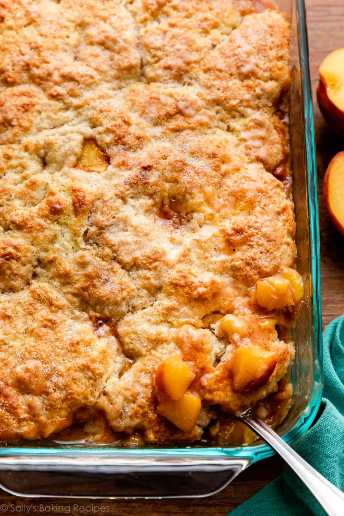 If someone puts a peach cobbler on the dessert table and the biscuit topping is golden and slightly crisp from an egg wash, that is not a random person; that is someone who used Sally’s recipe.