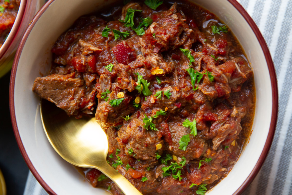The beef gets incredibly tender and picks up all those spicy, tangy flavors as it cooks.